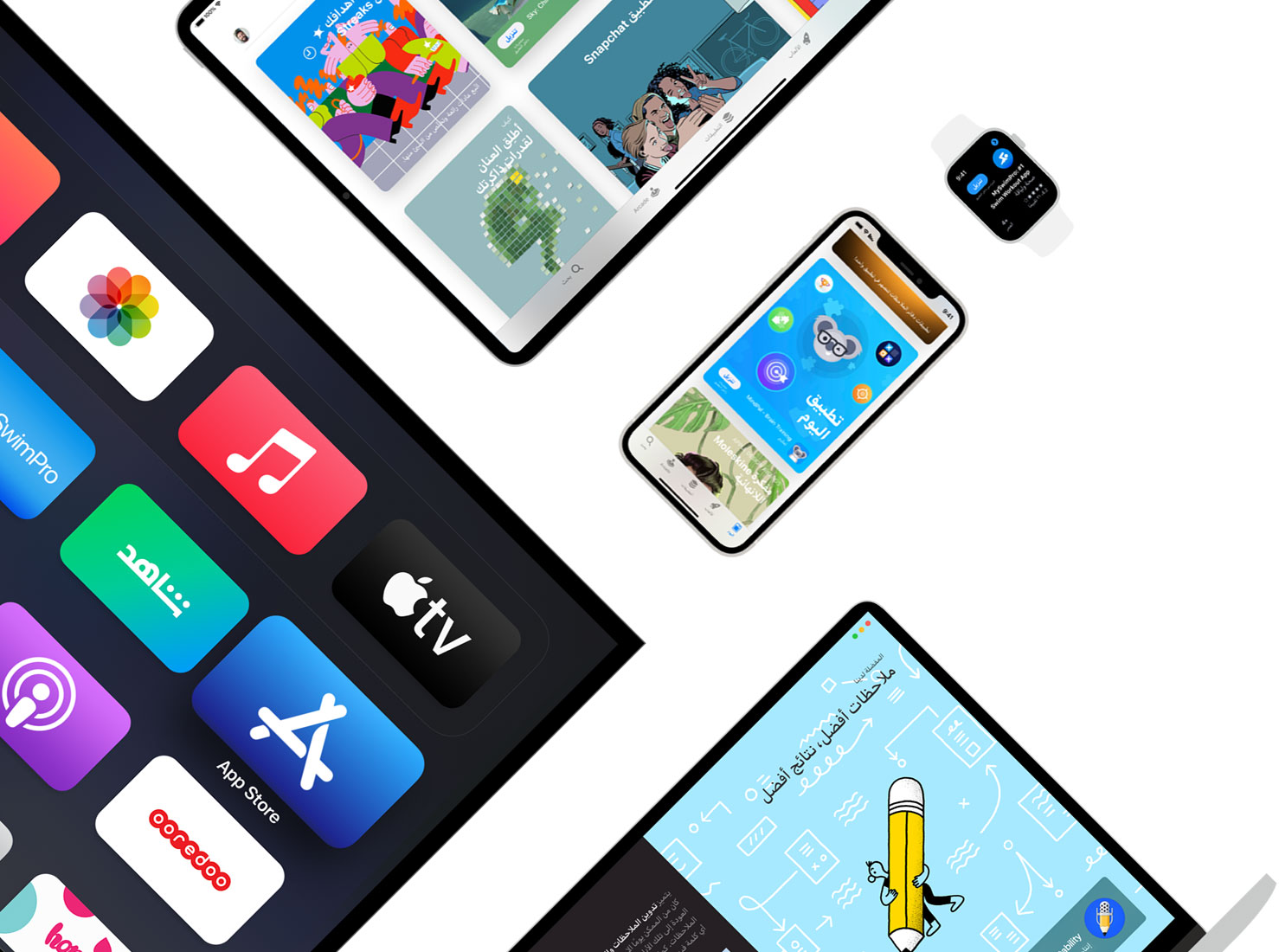 تستخدم منتجات Apple تكنولوجيا رائدة في مجالها تجعل التطبيقات تنبض بالحياة لتستمتع بتجربة المزيد من القدرات المذهلة التي يحملها جهازك. وبفضل الأجهزة والبرامج التي صُممت لتعمل معاً يمكنك تحقيق أقصى استفادة من التطبيقات، بدءاً من التسهيلات التي أصبحت من البديهيات مثل التمرير بكل سلاسة، وصولاً إلى إمكانية تجربة كنبة جديدة في غرفة جلوسك قبل شرائها.